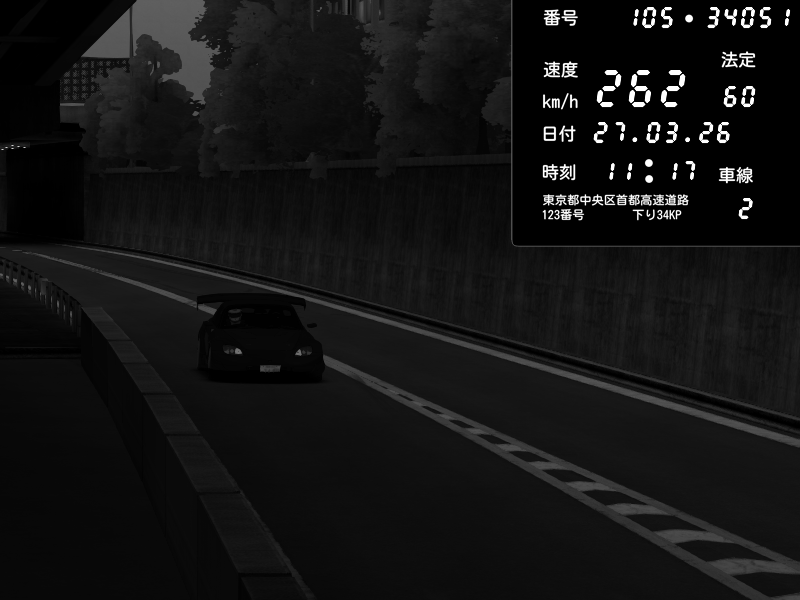 | 2026/03/27 10:44 | C1外回り 京橋 | 262 / 60 km/h | Paknas | Honda S2000 Turbo GT1 Amuse (AP1) | CAPTURE |