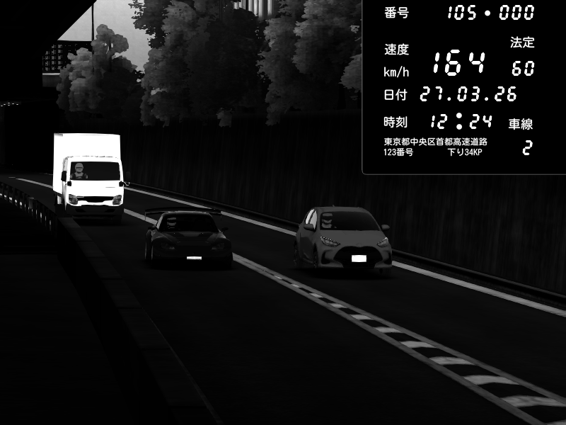 | 2026/03/27 11:04 | C1外回り 京橋 | 201 / 60 km/h | Paknas | Honda S2000 Turbo GT1 Amuse (AP1) | CAPTURE |