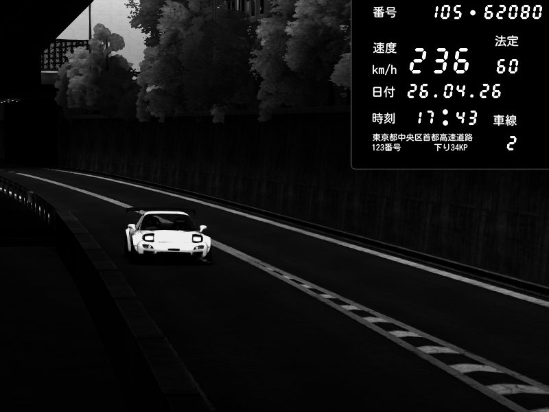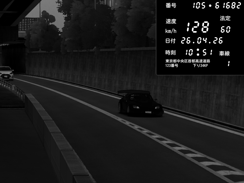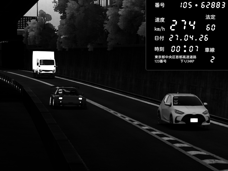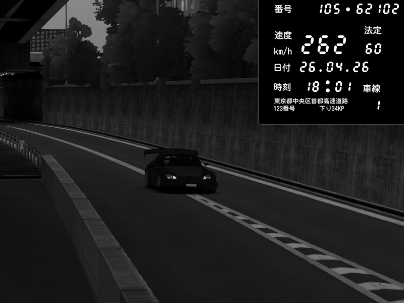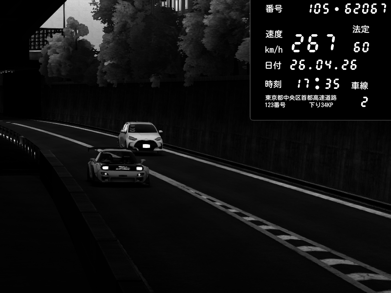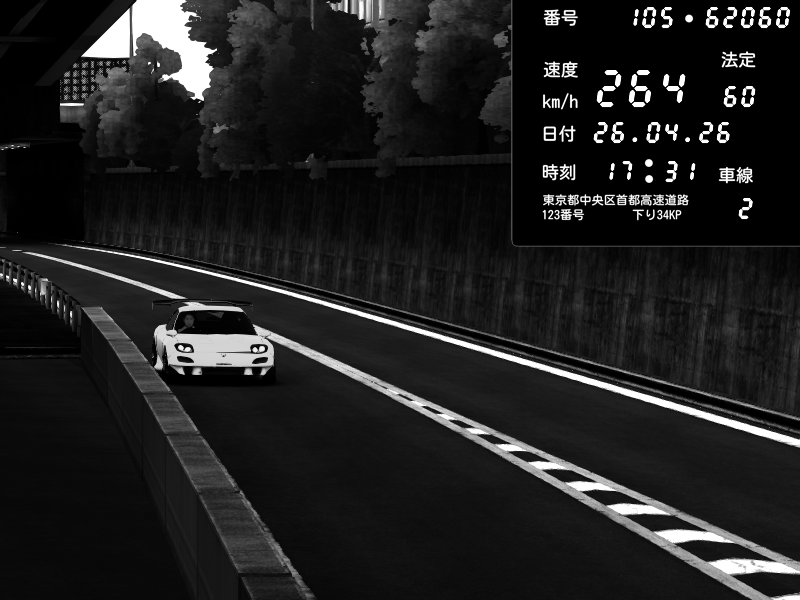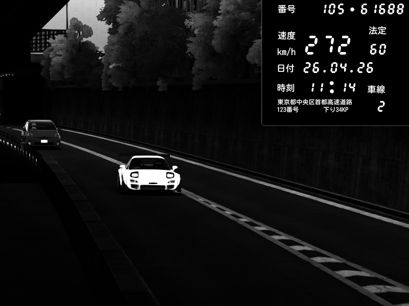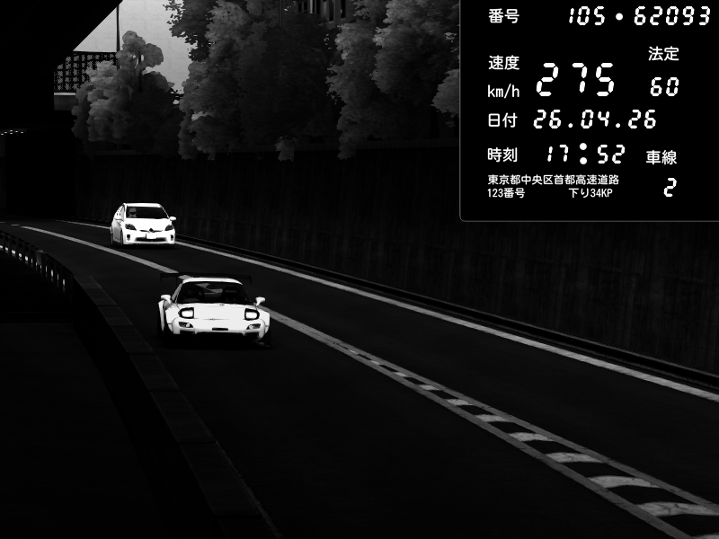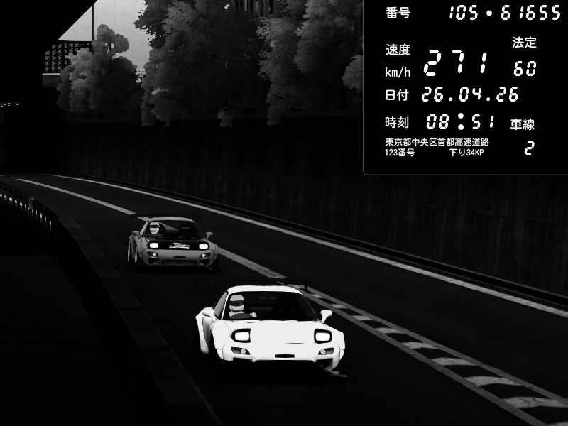 | 2026/04/26 08:10 | C1外回り 京橋 | 270 / 60 km/h | Daijiro | Mazda RX-7 FD3S RE Amemiya | CAPTURE |