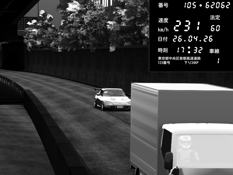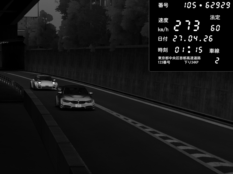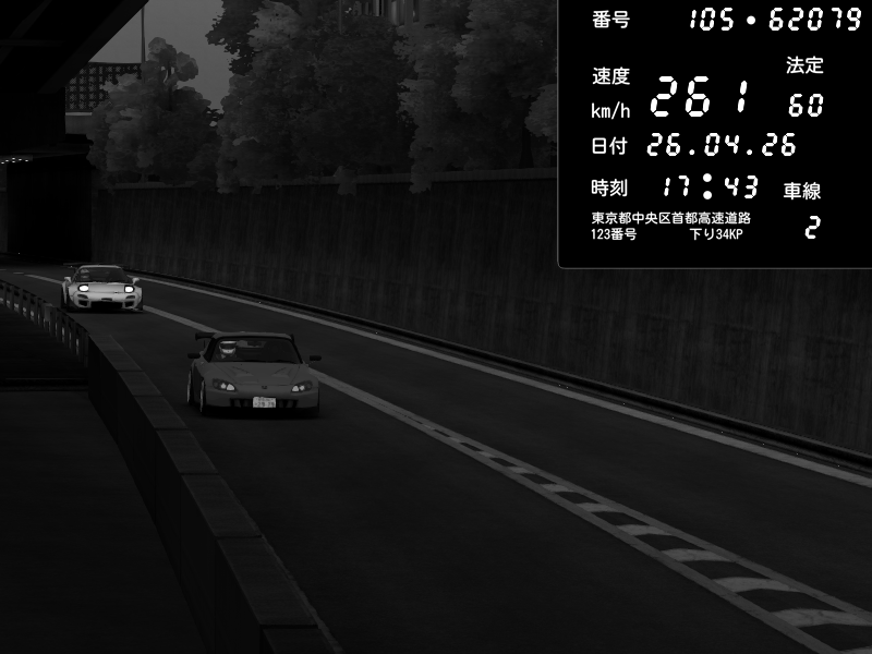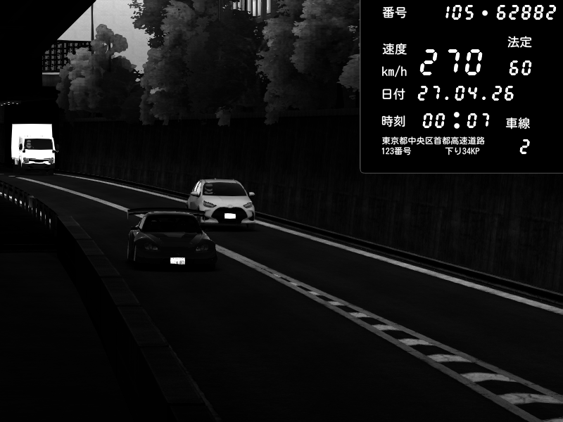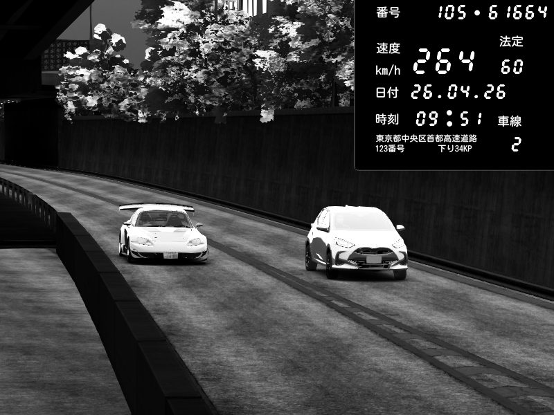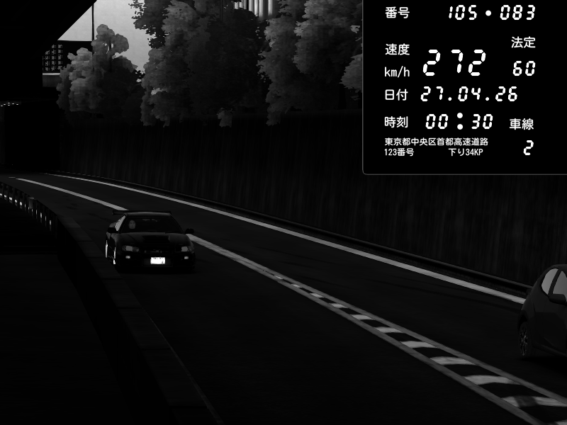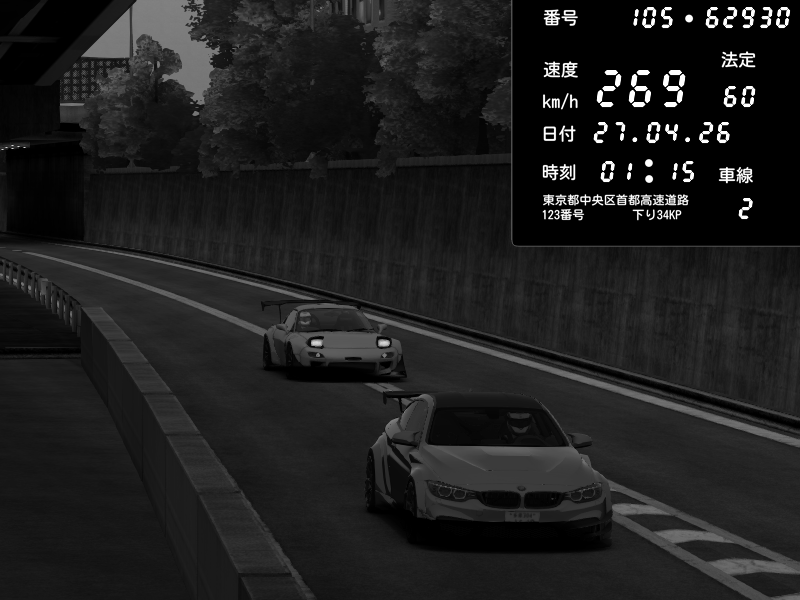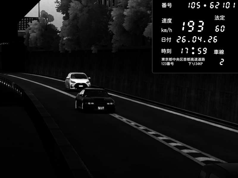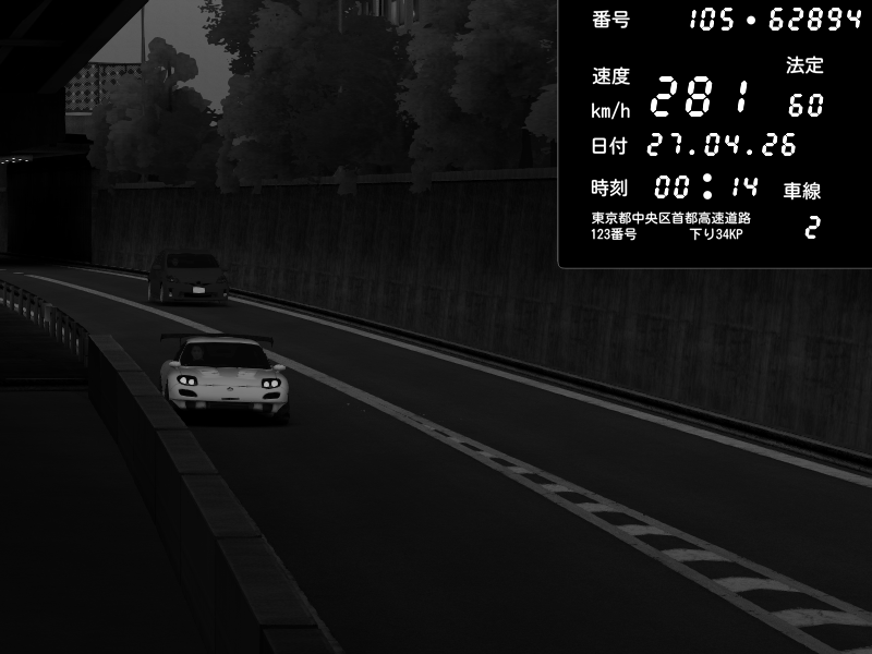 | 2026/04/26 08:10 | C1外回り 京橋 | 270 / 60 km/h | Daijiro | Mazda RX-7 FD3S RE Amemiya | CAPTURE |