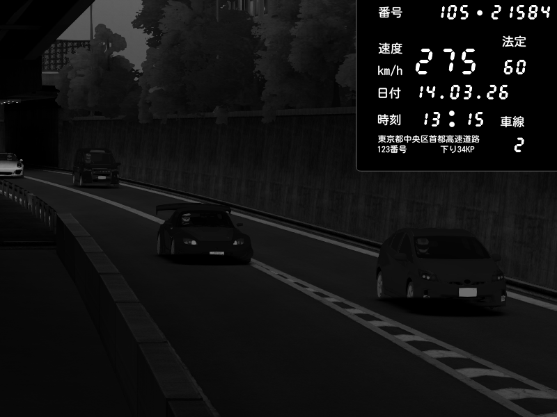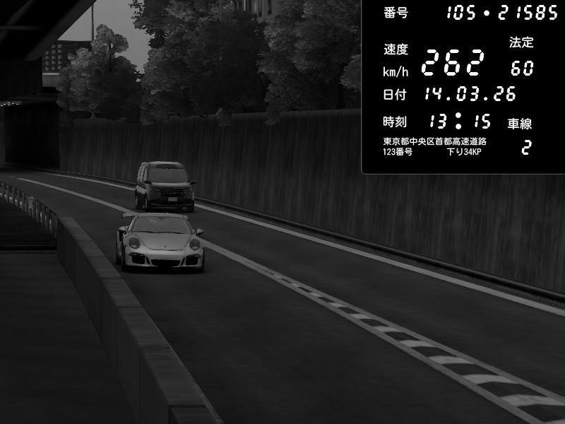 | 2026/03/14 13:15 | C1外回り 京橋 | 262 / 60 km/h | nuyui209 | Porsche 911 GT3 RS | CAPTURE |