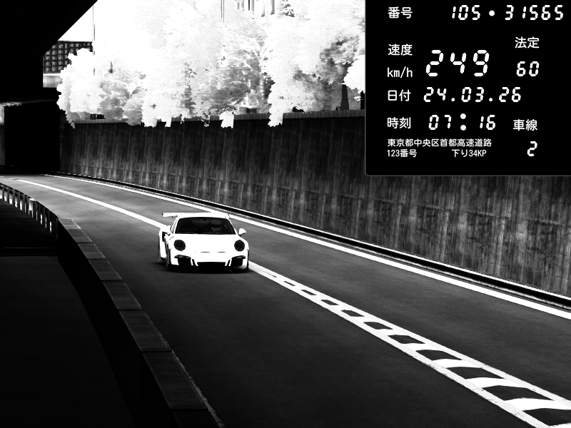 | 2026/03/24 04:53 | C1外回り 京橋 | 154 / 60 km/h | MASUO-JP | Porsche 911 GT3 RS | CAPTURE |