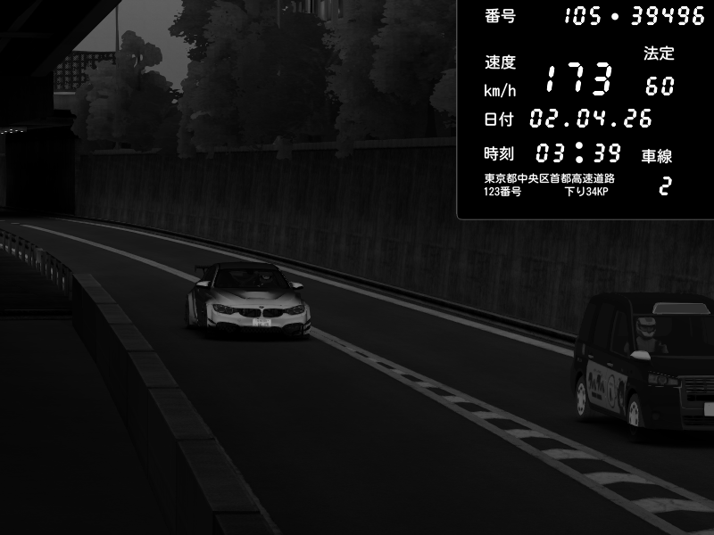 | 2026/04/02 03:39 | C1外回り 京橋 | 173 / 60 km/h | jd | BMW M4 crash.Sp Varis Widebody | CAPTURE |