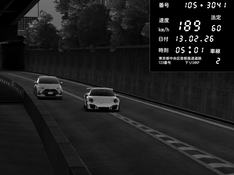| 2026/02/12 05:43 | C1外回り 京橋 | 234 / 60 km/h | baey | Porsche 911 GT3 RS | CAPTURE |