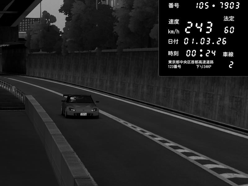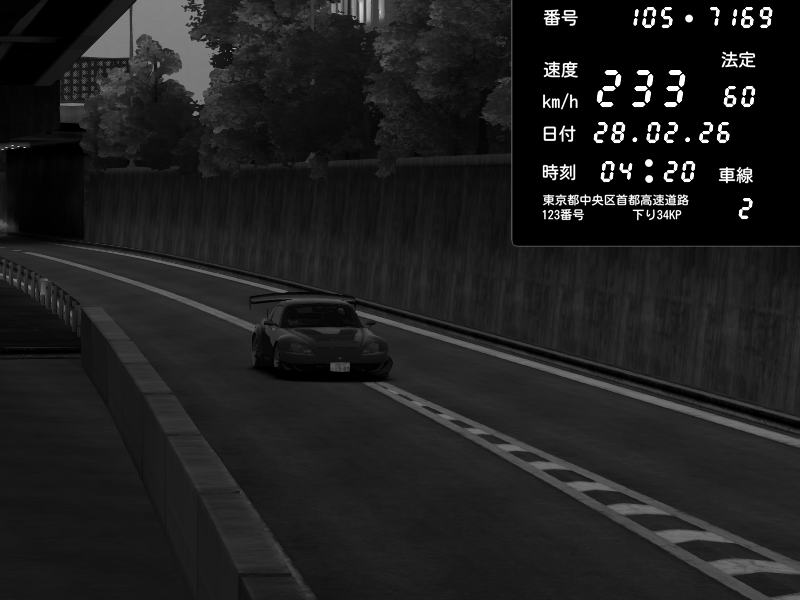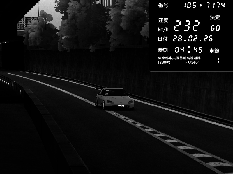 | 2026/03/01 00:31 | C1外回り 京橋 | 250 / 60 km/h | Futas | Honda S2000 (AP2 - Legendary) | CAPTURE |