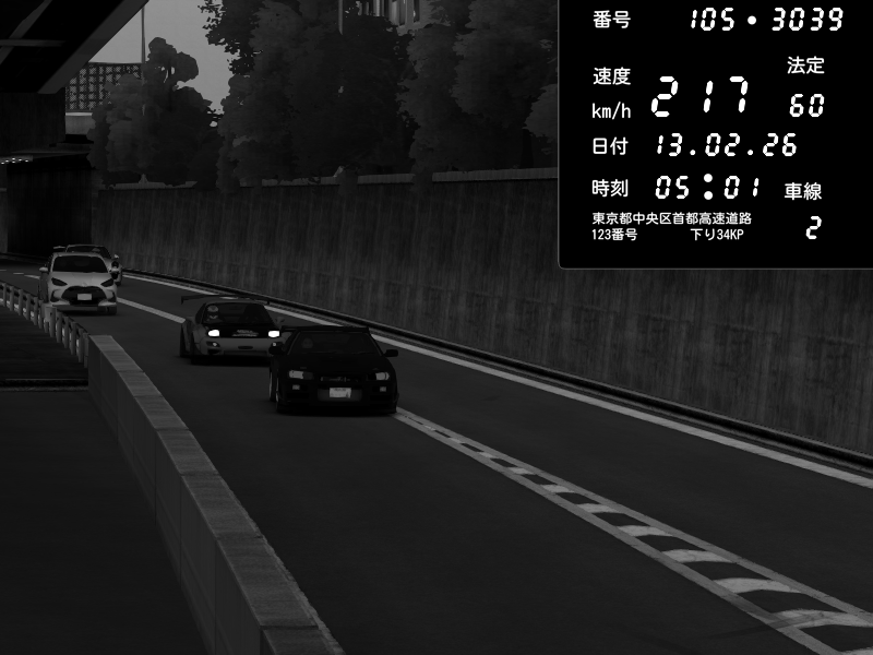 | 2026/02/12 02:53 | C1外回り 京橋 | 253 / 60 km/h | gc8 lover | Nissan Skyline GTR R33 (S3 - Wangan) | CAPTURE |
