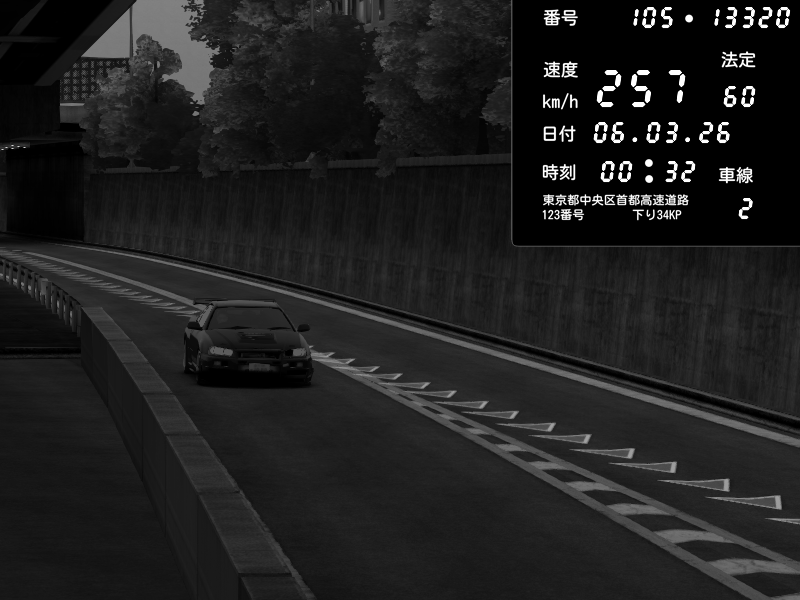 | 2026/03/06 00:32 | C1外回り 京橋 | 257 / 60 km/h | Chiyo | Nissan Skyline GT-R R34 Nismo Omori Factory S1 | CAPTURE |
