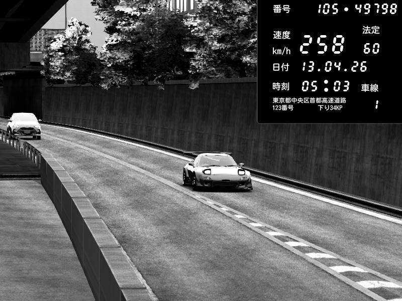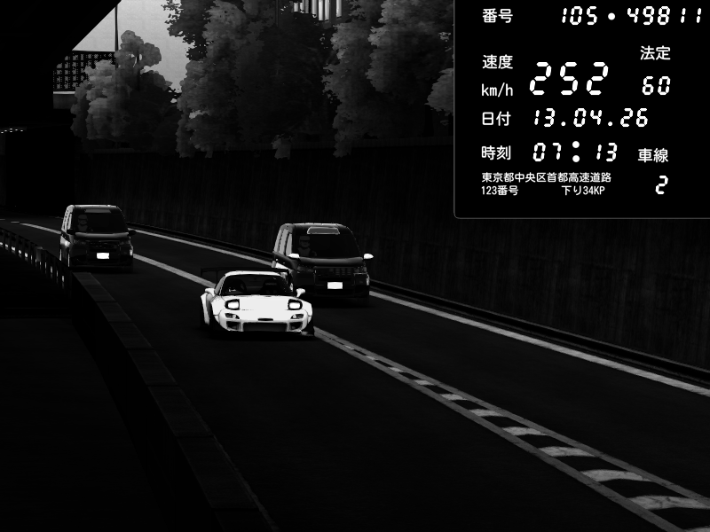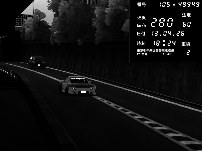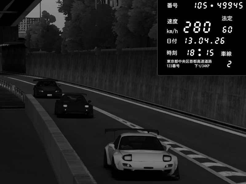 | 2026/04/13 18:15 | C1外回り 京橋 | 280 / 60 km/h | 02 | Mazda RX-7 FD3S FEED Afflux GT3 | CAPTURE |