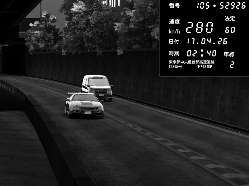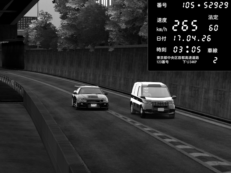| 2026/04/17 03:21 | C1外回り 京橋 | 274 / 60 km/h | KPSTYLE | Nissan Skyline GT-R R34 Nismo Omori Factory S1 | CAPTURE |