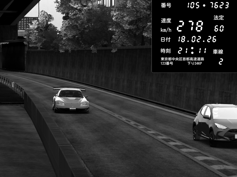 | 2026/02/18 14:21 | C1外回り 京橋 | 263 / 60 km/h | ( ・▽・) | Honda S2000 Turbo GT1 Amuse (AP1) | CAPTURE |