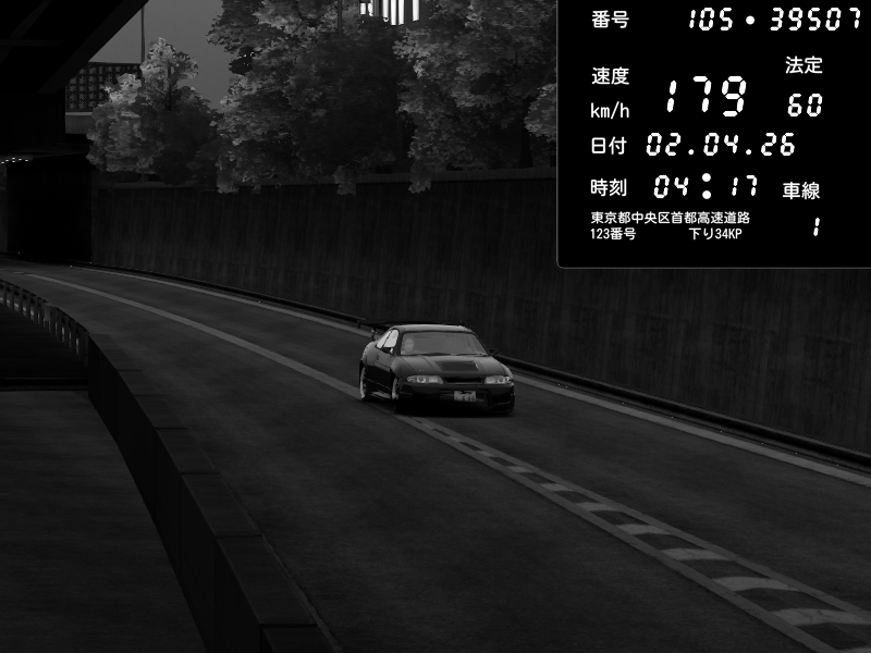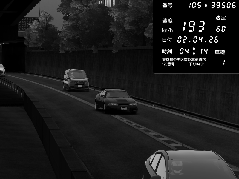 | 2026/04/02 04:14 | C1外回り 京橋 | 193 / 60 km/h | jd | Nissan Skyline GTR R33 (S3 - Wangan) | CAPTURE |