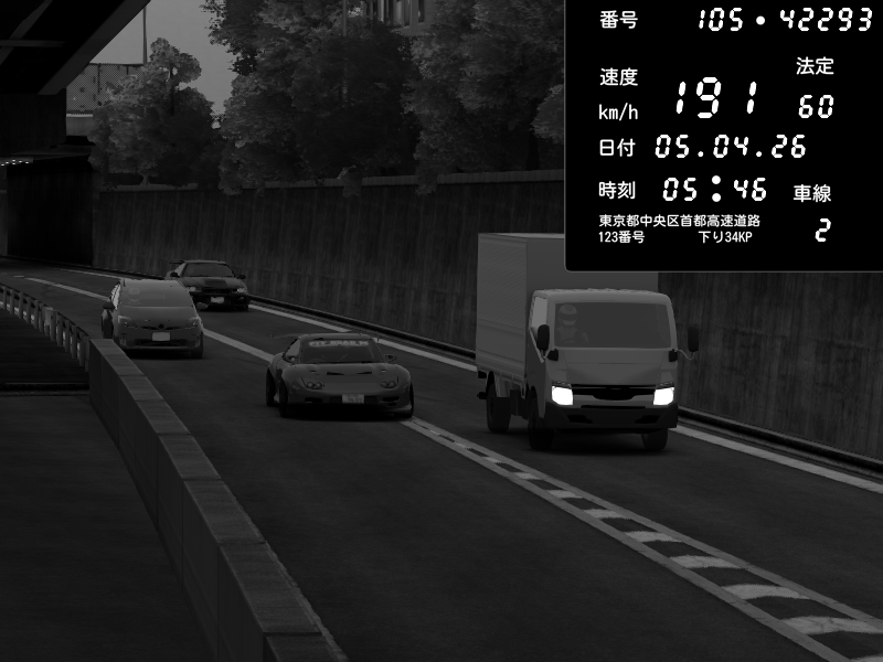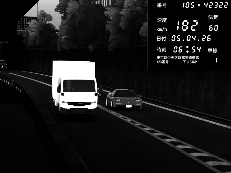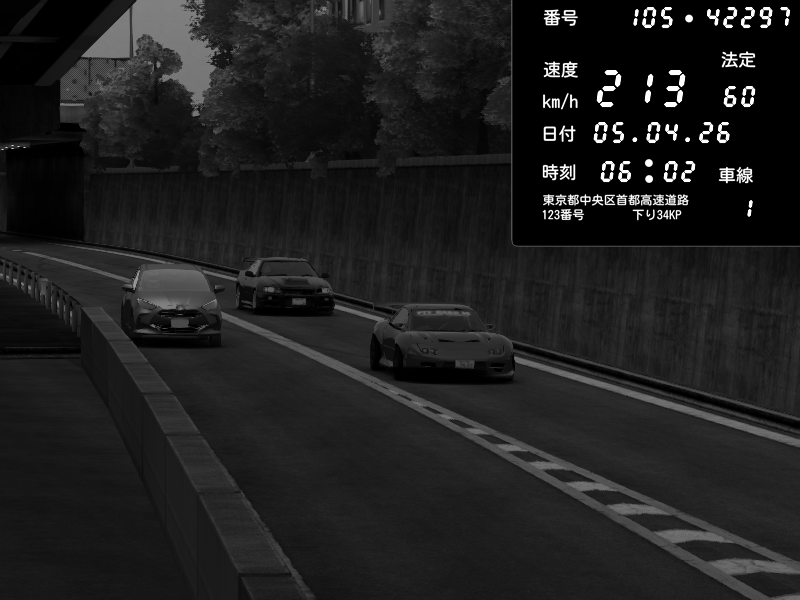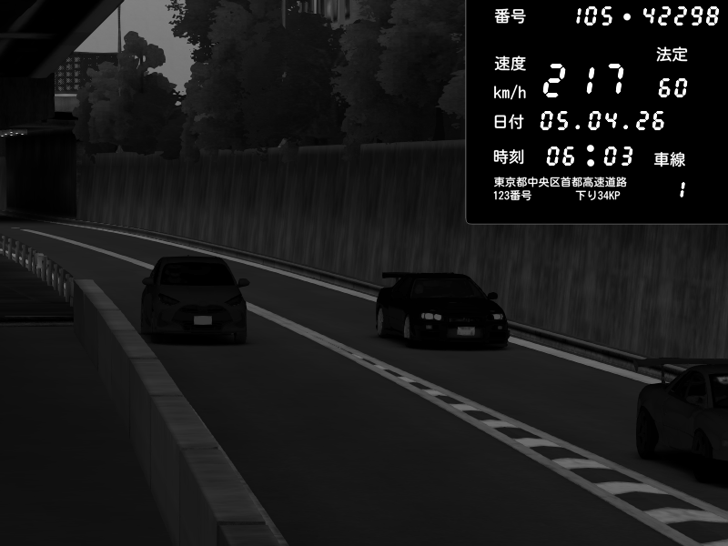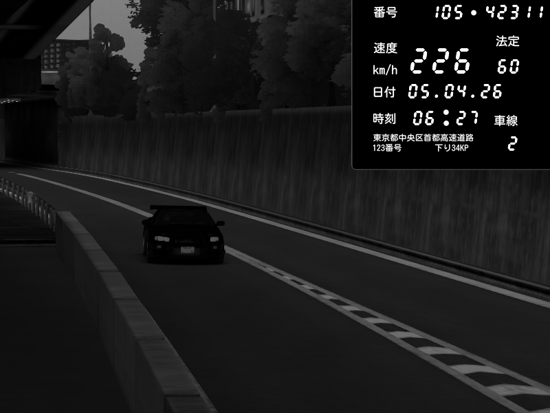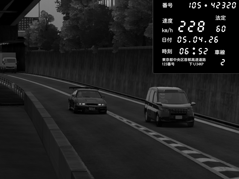 | 2026/04/06 06:35 | C1外回り 京橋 | 266 / 60 km/h | A1z | Nissan GT-R NISMO 2017 | CAPTURE |