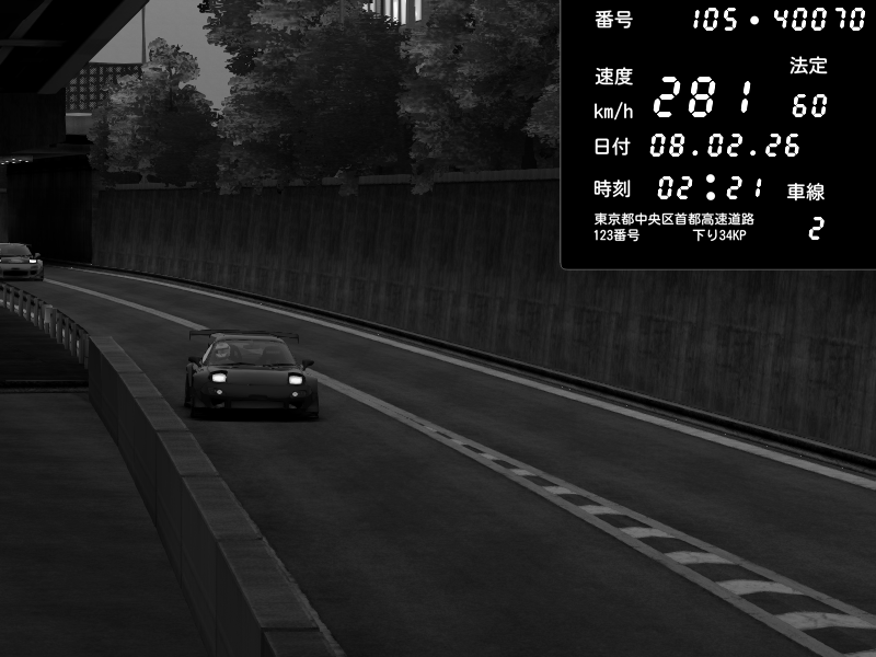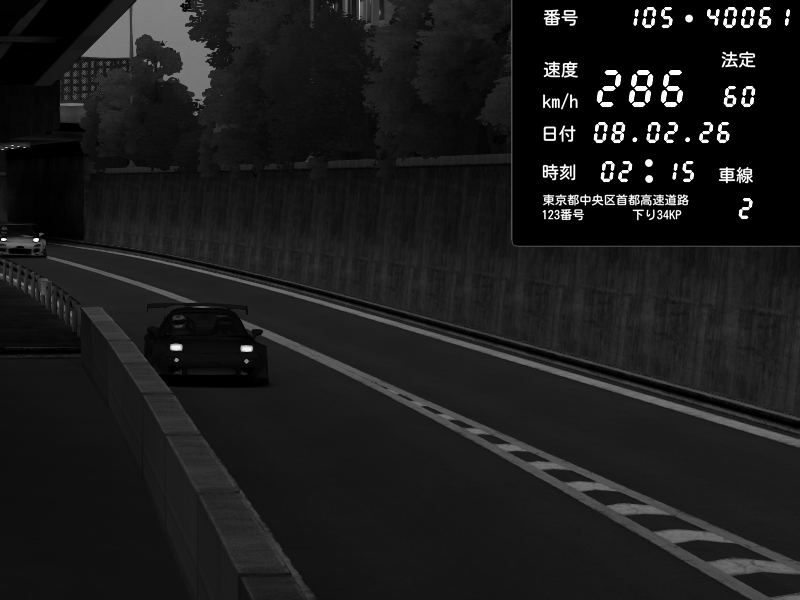 | 2026/02/07 18:07 | C1外回り 京橋 | 280 / 60 km/h | homura | Mazda RX-7 FD3S FEED Afflux GT3 | CAPTURE |
