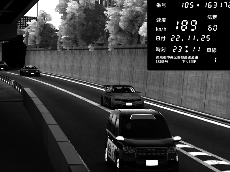 | 2025/11/22 23:11 | C1外回り 京橋 | 175 / 60 km/h | att *:) | BMW M4 crash.Sp Varis Widebody | CAPTURE |
