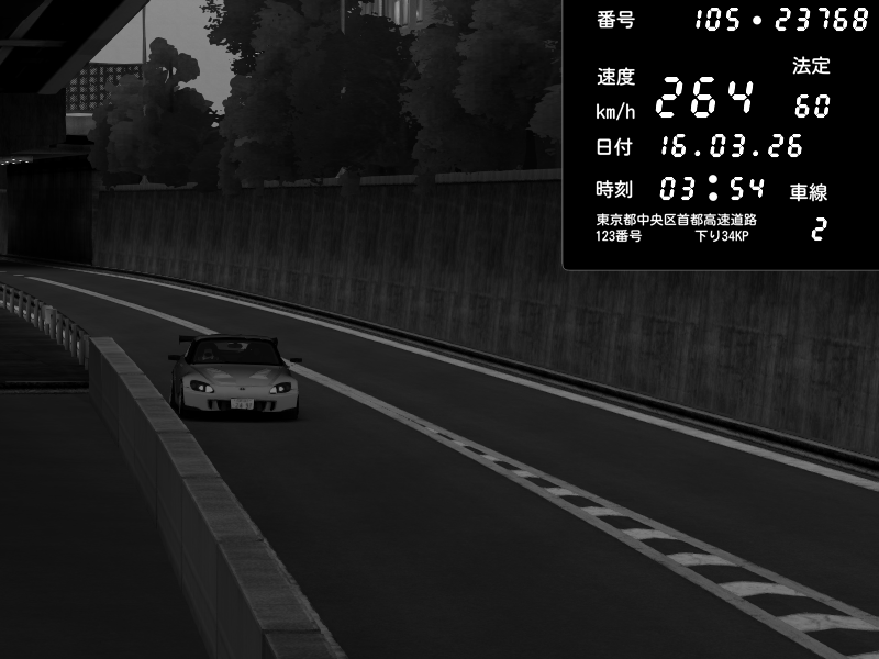 | 2026/03/16 16:36 | C1外回り 京橋 | 254 / 60 km/h | munyu0122 | Honda S2000 Turbo GT1 Amuse (AP1) | CAPTURE |