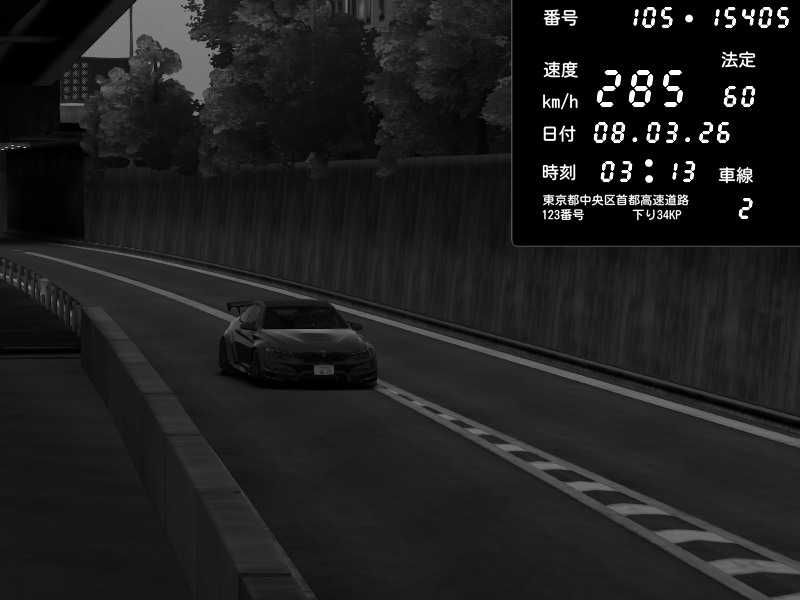 | 2026/03/08 03:13 | C1外回り 京橋 | 285 / 60 km/h | HENNESSY | BMW M4 crash.Sp Varis Widebody | CAPTURE |