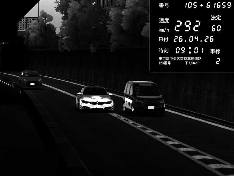 | 2026/04/26 09:01 | C1外回り 京橋 | 292 / 60 km/h | boo481130 | BMW M4 crash.Sp Varis Widebody | CAPTURE |