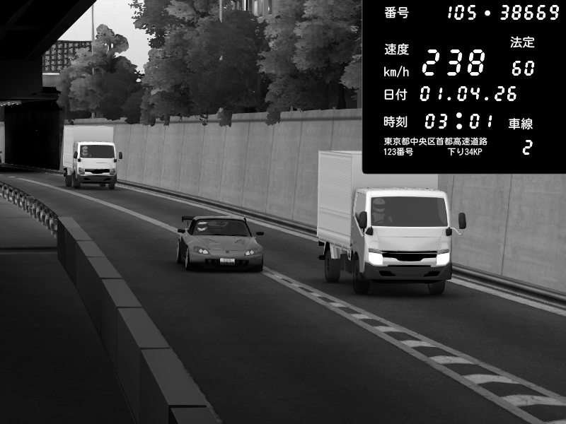 | 2026/03/31 14:01 | C1外回り 京橋 | 255 / 60 km/h | Amizzz | Honda S2000 (AP2 - Legendary) | CAPTURE |