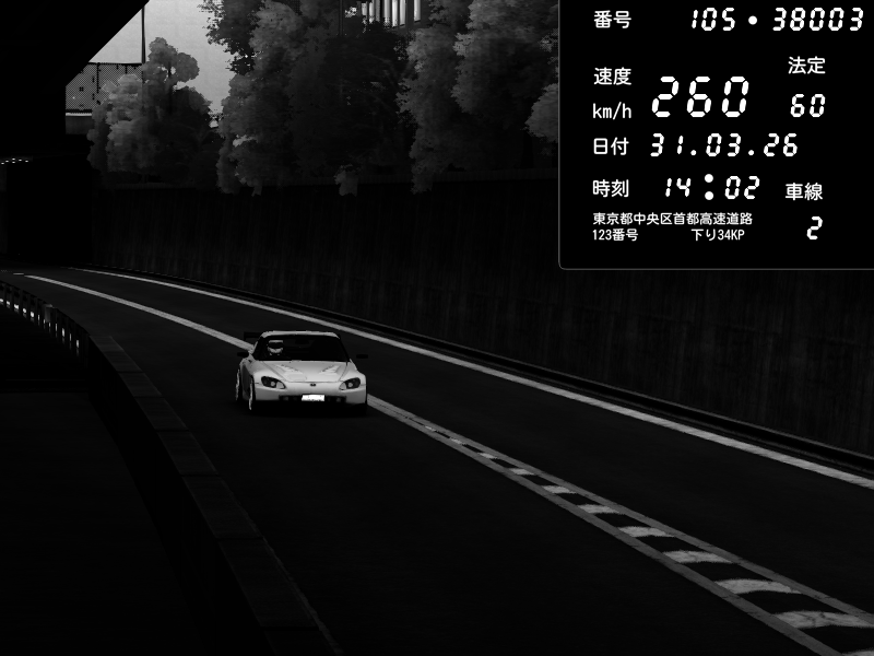 | 2026/03/31 14:26 | C1外回り 京橋 | 260 / 60 km/h | junya | Honda S2000 (AP2 - Legendary) | CAPTURE |