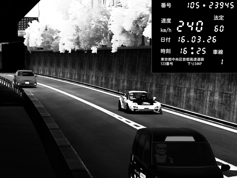 | 2026/03/16 16:25 | C1外回り 京橋 | 240 / 60 km/h | MASUO-JP | Mazda RX-7 FD3S FEED Afflux GT3 | CAPTURE |