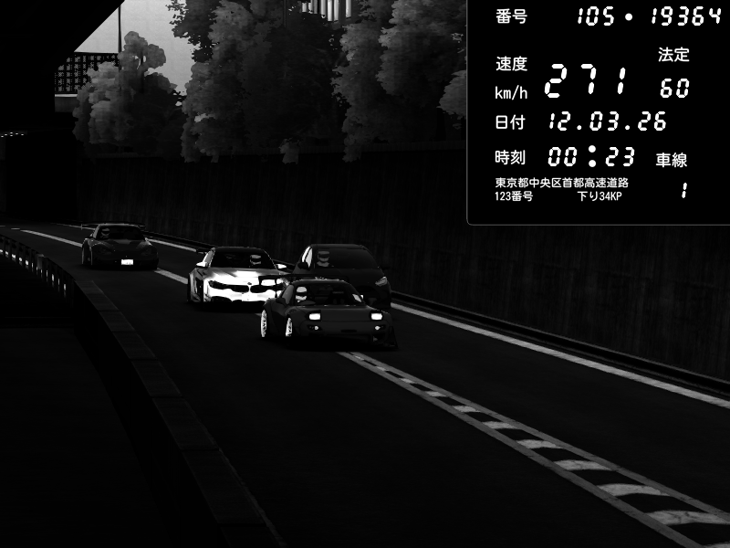 | 2026/03/12 15:17 | C1外回り 京橋 | 281 / 60 km/h | Nytrod | Mazda RX-7 FD3S FEED Afflux GT3 | CAPTURE |