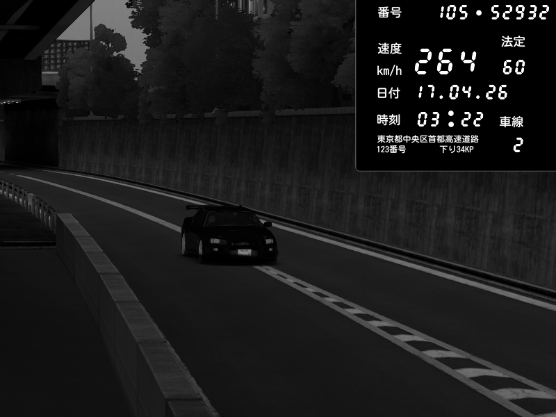 | 2026/04/17 05:49 | C1外回り 京橋 | 269 / 60 km/h | Todokai | Mazda RX-7 FD3S RE Amemiya | CAPTURE |