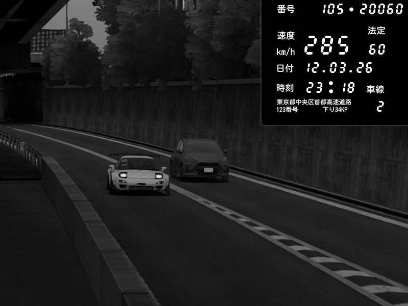 | 2026/03/12 15:35 | C1外回り 京橋 | 158 / 60 km/h | 🔰 nezunezu | Mazda RX-7 FD3S FEED Afflux GT3 | CAPTURE |