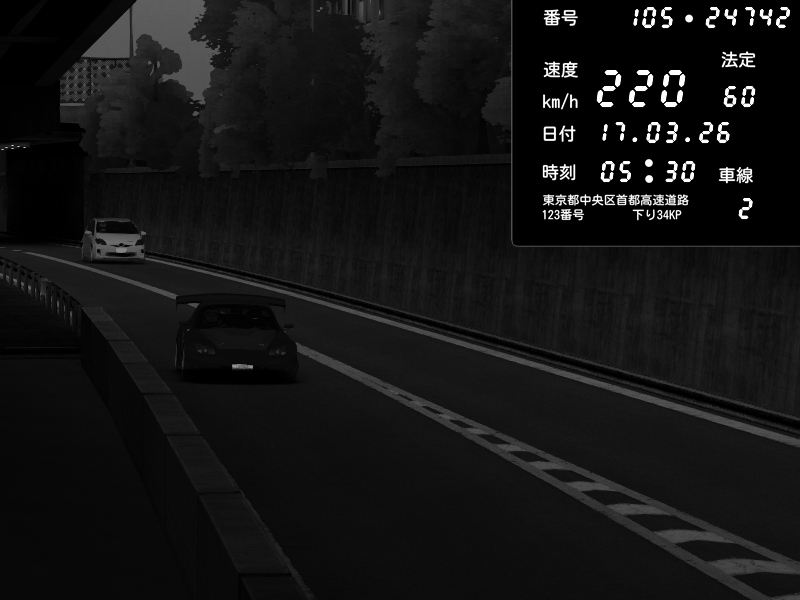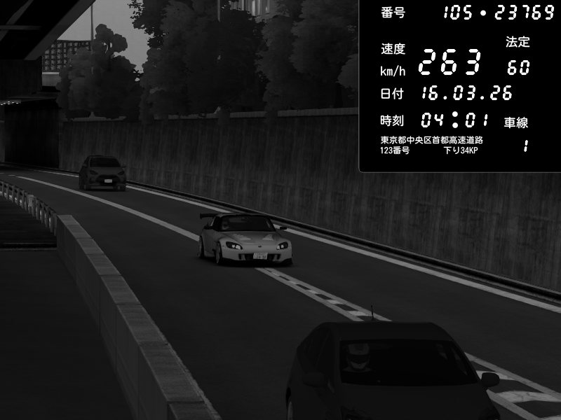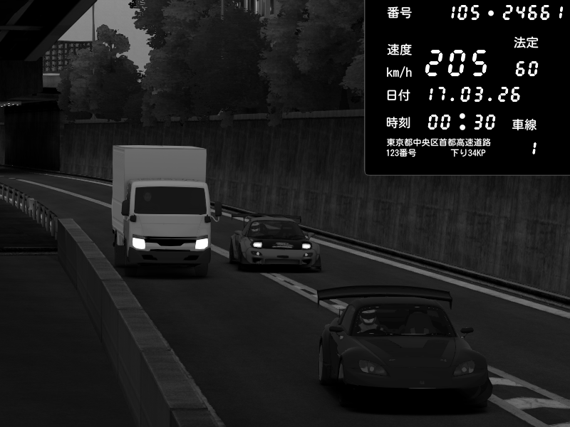 | 2026/03/16 16:17 | C1外回り 京橋 | 241 / 60 km/h | munyu0122 | Honda S2000 Turbo GT1 Amuse (AP1) | CAPTURE |