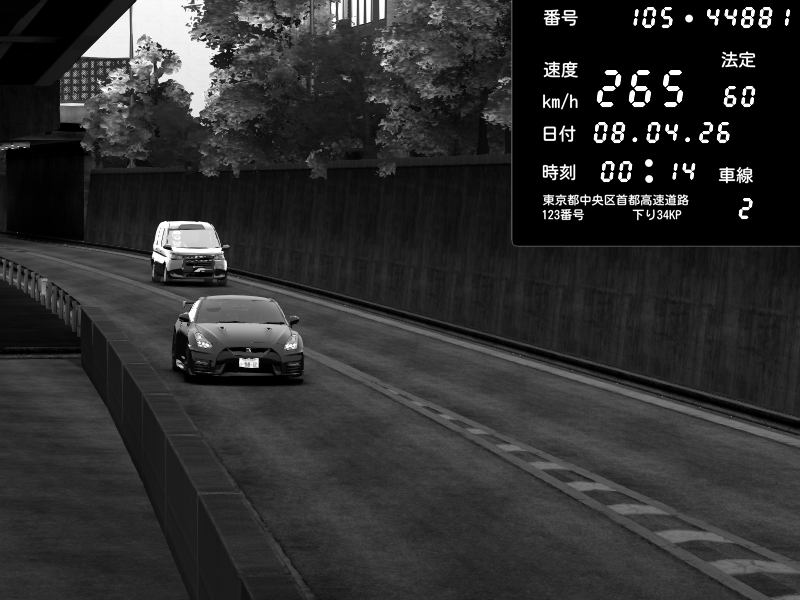 | 2026/04/08 00:14 | C1外回り 京橋 | 265 / 60 km/h | snow_mogul | Nissan GT-R NISMO 2017 | CAPTURE |