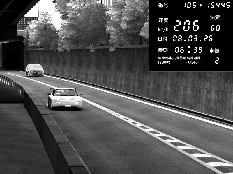 | 2026/03/08 06:39 | C1外回り 京橋 | 206 / 60 km/h | fuga | Honda S2000 (AP2 - Legendary) | CAPTURE |