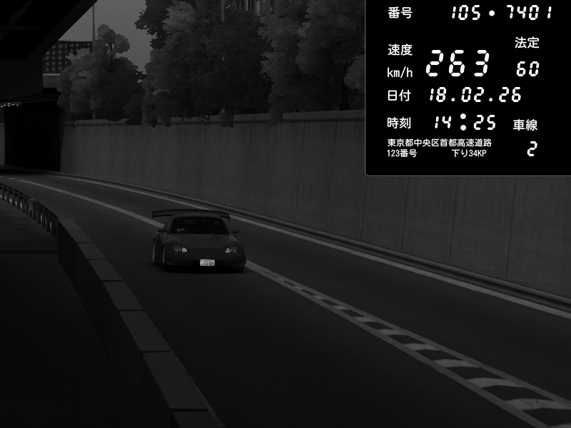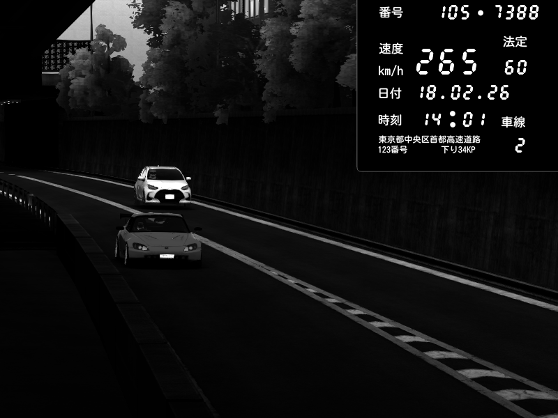 | 2026/02/18 14:01 | C1外回り 京橋 | 265 / 60 km/h | Shinra | Honda S2000 (AP2 - Legendary) | CAPTURE |
