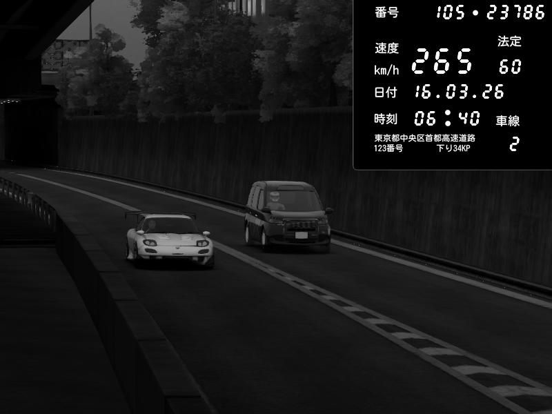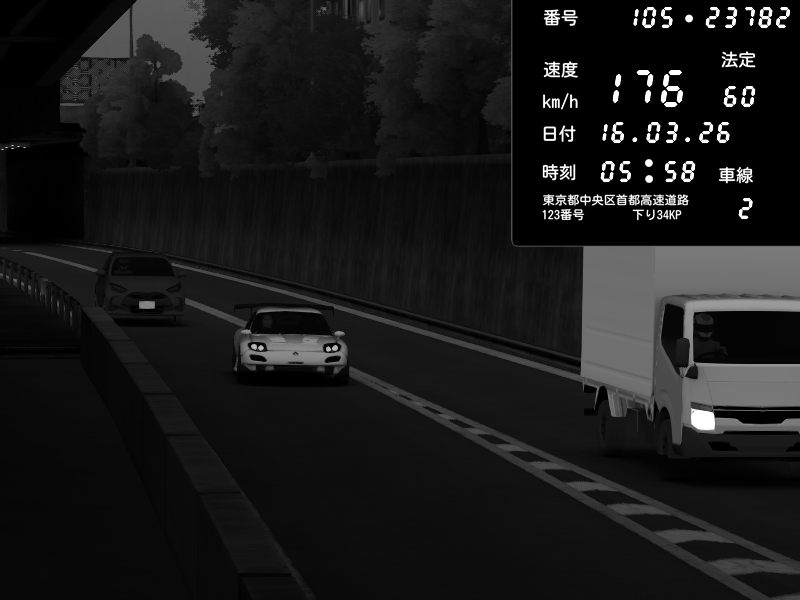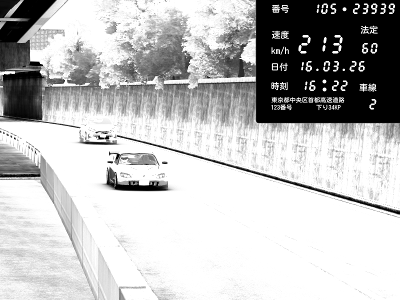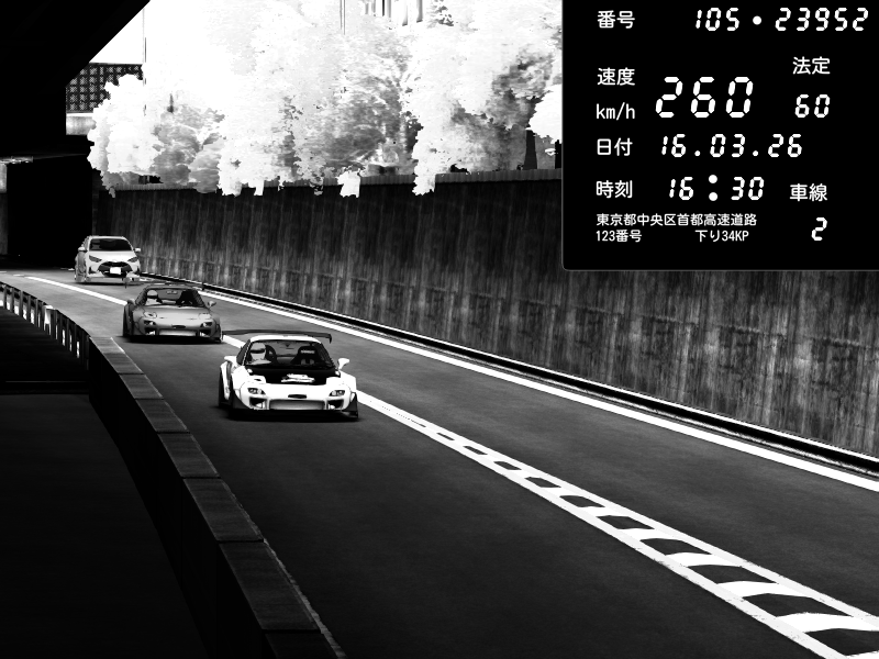 | 2026/03/16 16:35 | C1外回り 京橋 | 212 / 60 km/h | Tako2526 | Mazda RX-7 FD3S FEED Afflux GT3 | CAPTURE |
