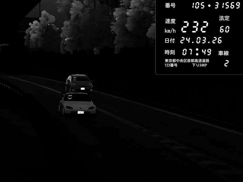 | 2026/03/24 04:29 | C1外回り 京橋 | 260 / 60 km/h | metaxa | Honda S2000 (AP2 - Legendary) | CAPTURE |