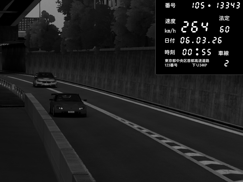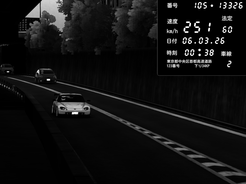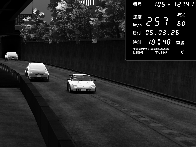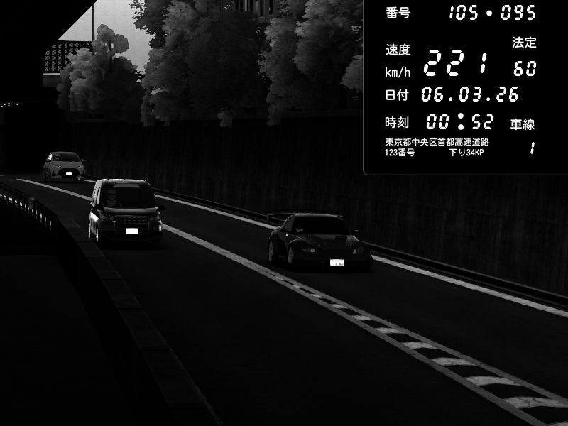 | 2026/03/06 01:05 | C1外回り 京橋 | 257 / 60 km/h | ojisandrift | Honda S2000 (AP2 - Legendary) | CAPTURE |