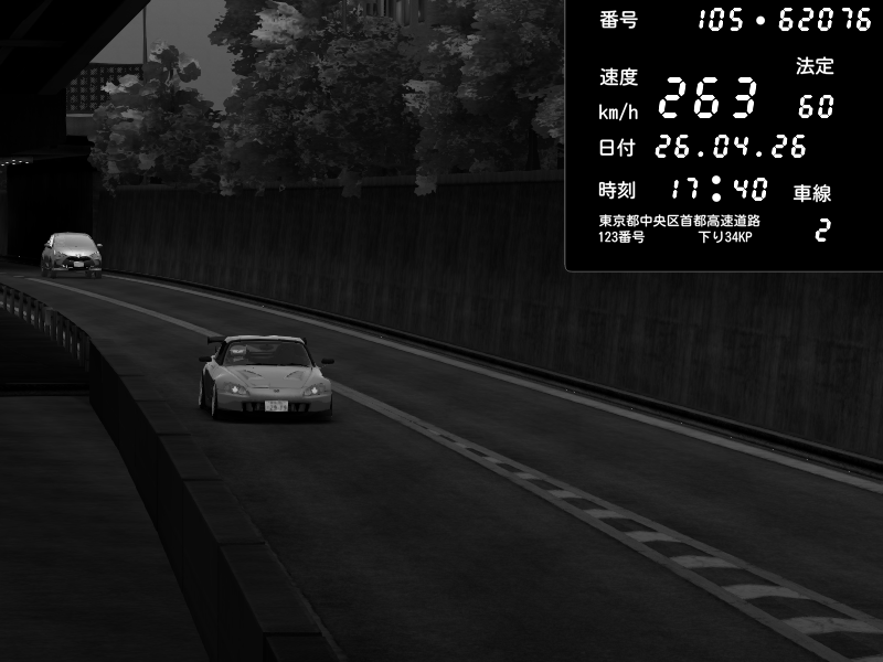 | 2026/04/26 10:45 | C1外回り 京橋 | 247 / 60 km/h | itsu RwD | Honda S2000 Turbo GT1 Amuse (AP1) | CAPTURE |