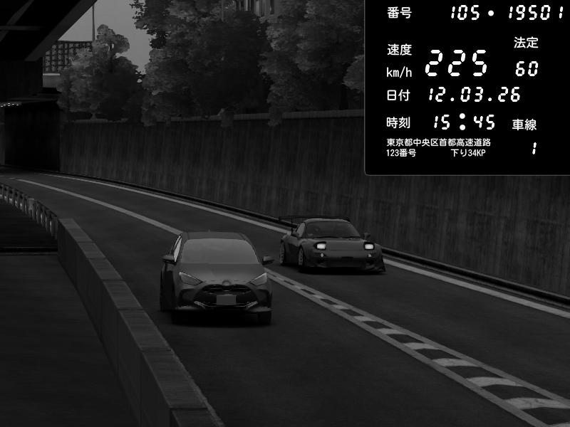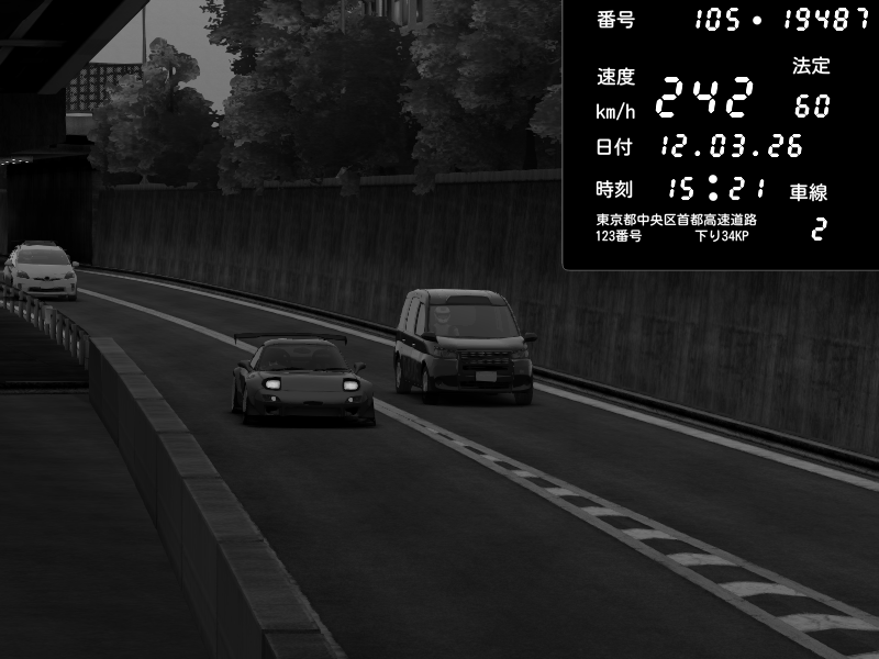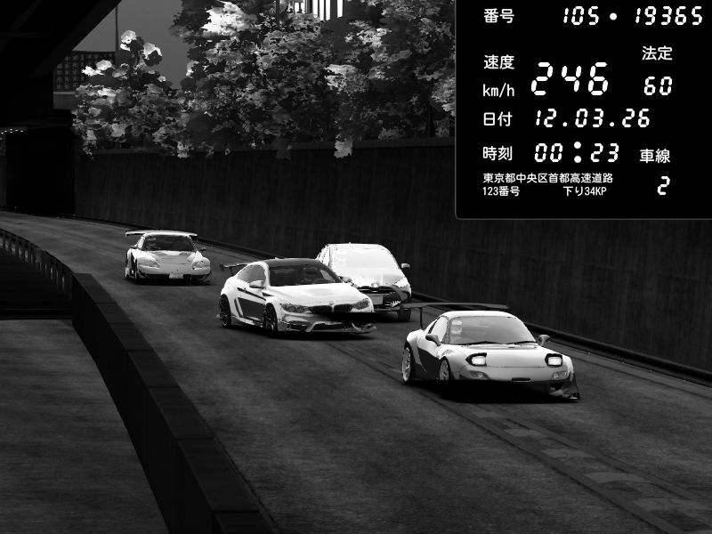 | 2026/03/12 15:21 | C1外回り 京橋 | 242 / 60 km/h | HaQu. | Mazda RX-7 FD3S FEED Afflux GT3 | CAPTURE |