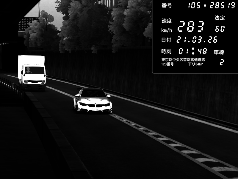 | 2026/03/21 02:29 | C1外回り 京橋 | 297 / 60 km/h | Xeq9_POLARIS | BMW M4 crash.Sp Varis Widebody | CAPTURE |