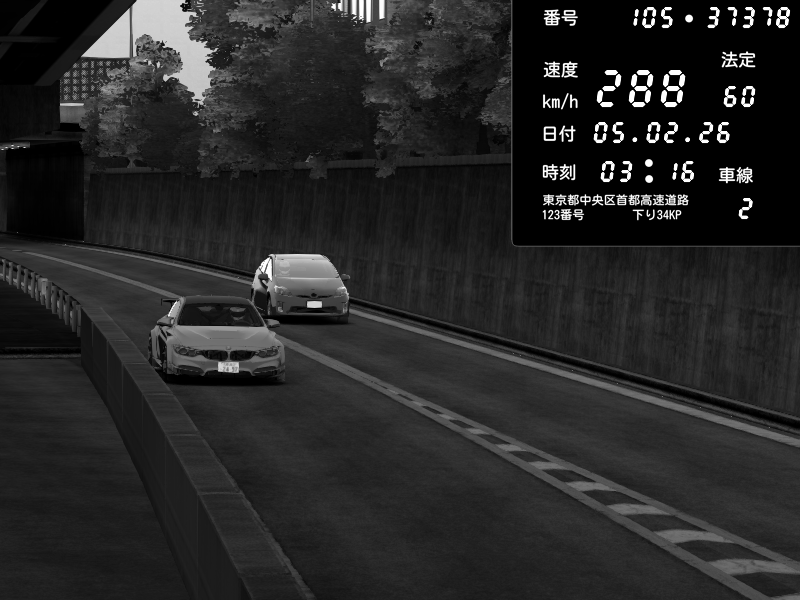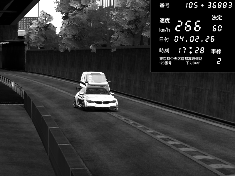 | 2026/02/05 03:29 | C1外回り 京橋 | 247 / 60 km/h | snapdragon | BMW M4 crash.Sp Varis Widebody | CAPTURE |