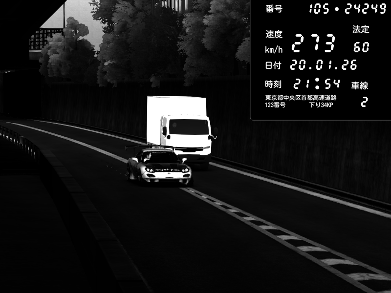 | 2026/01/20 21:31 | C1外回り 京橋 | 254 / 60 km/h | Futas | Mazda RX-7 FD3S FEED Afflux GT3 | CAPTURE |