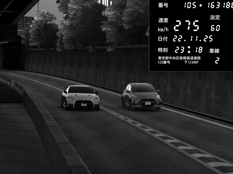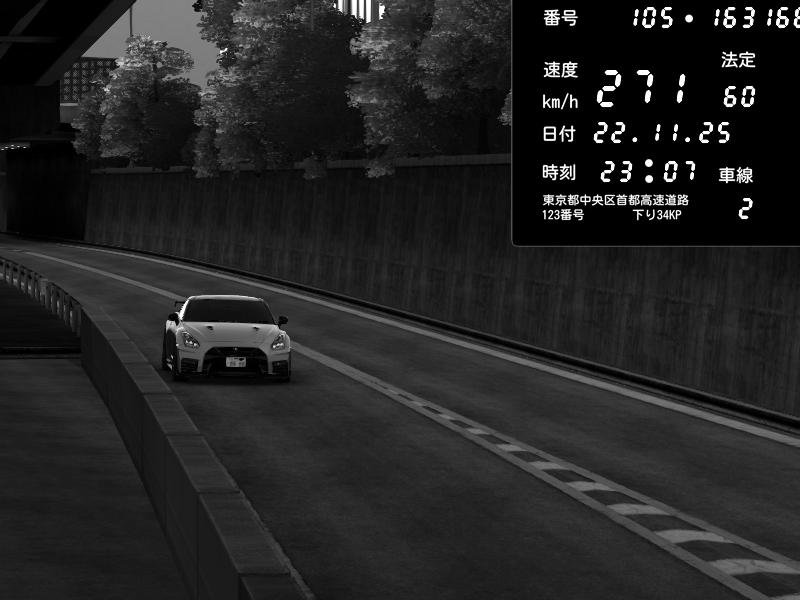 | 2025/11/22 23:03 | C1外回り 京橋 | 276 / 60 km/h | kamikaze623 | Nissan GT-R NISMO 2017 | CAPTURE |