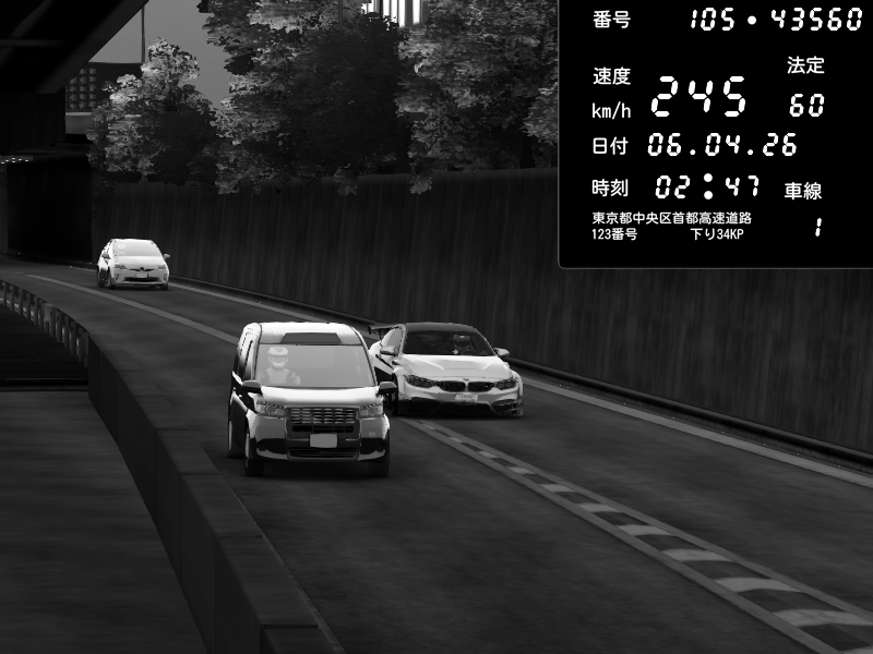 | 2026/04/07 02:25 | C1外回り 京橋 | 214 / 60 km/h | Lazzhunter | BMW M4 crash.Sp Varis Widebody | CAPTURE |