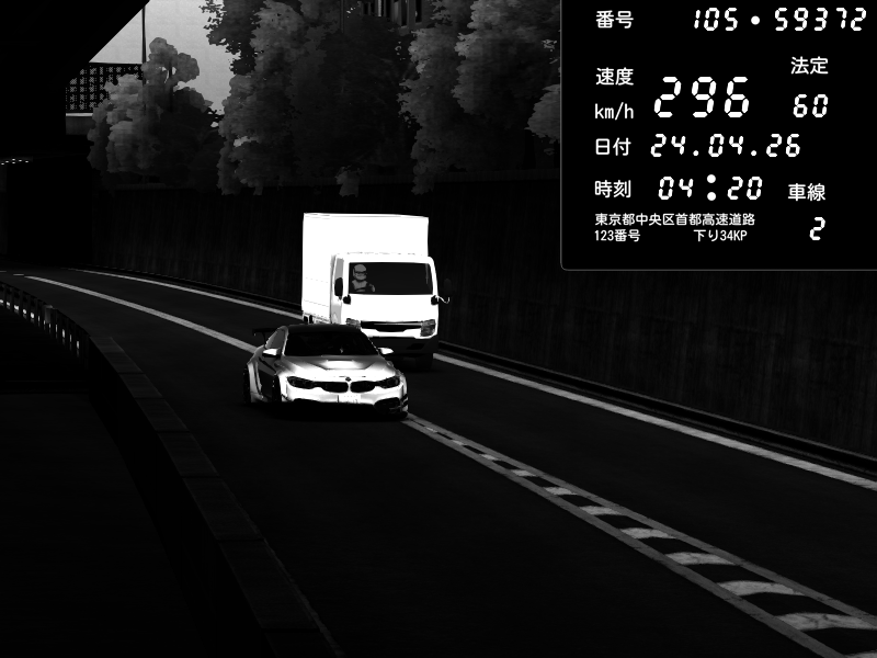 | 2026/04/22 02:31 | C1外回り 京橋 | 212 / 60 km/h | SarkoNAJA | BMW M4 crash.Sp Varis Widebody | CAPTURE |