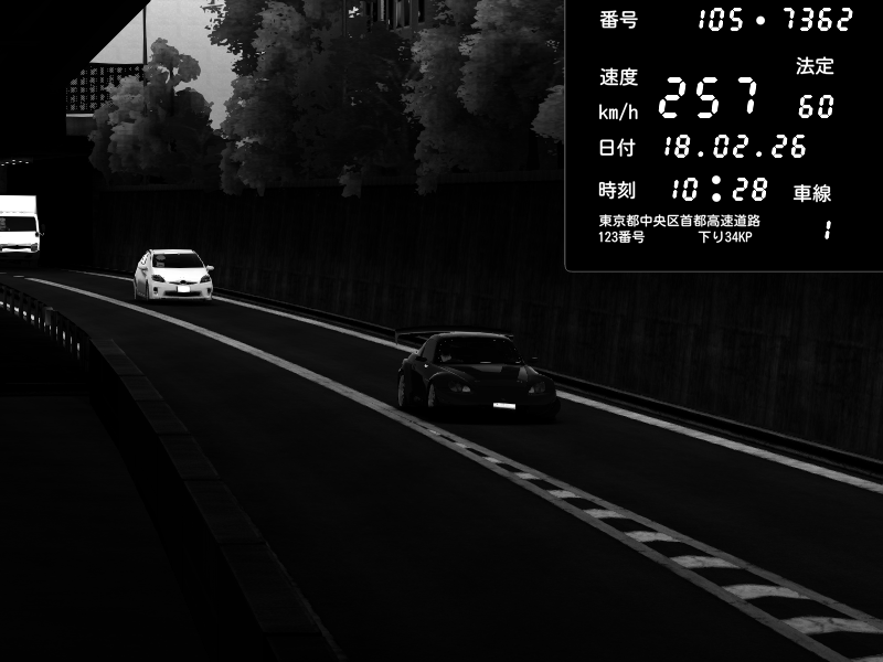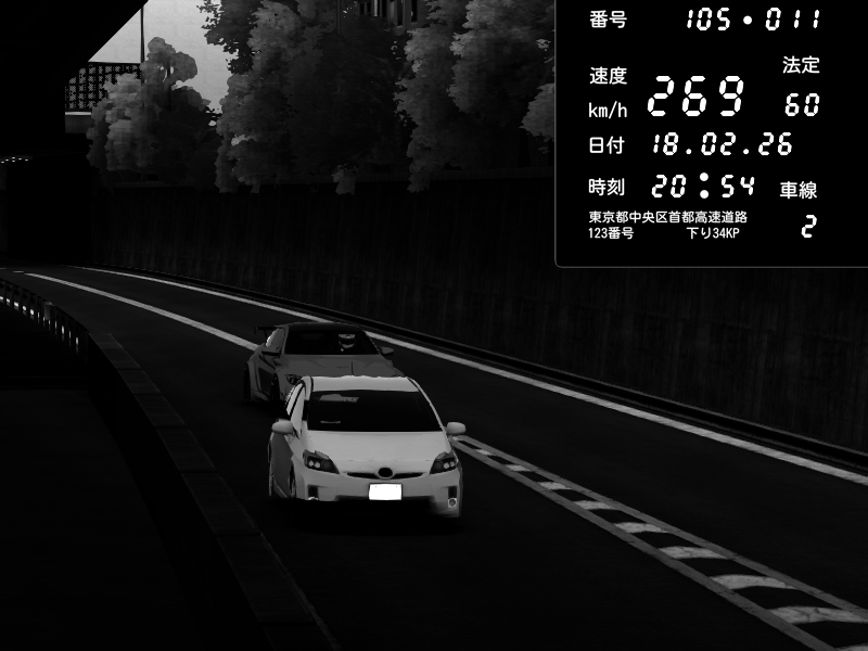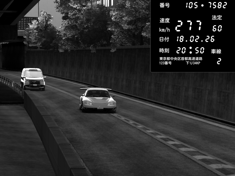 | 2026/02/18 09:18 | C1外回り 京橋 | 267 / 60 km/h | Shinra | Honda S2000 (AP2 - Legendary) | CAPTURE |