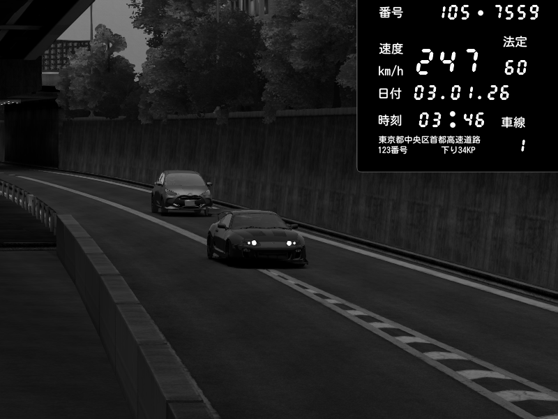 | 2026/01/03 03:46 | C1外回り 京橋 | 247 / 60 km/h | トリはぴ | Toyota Supra MKIV Time Attack | CAPTURE |