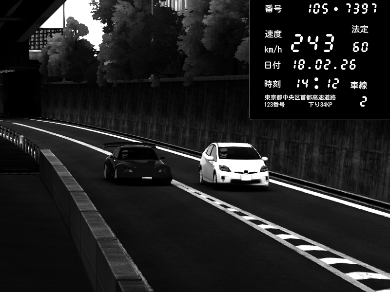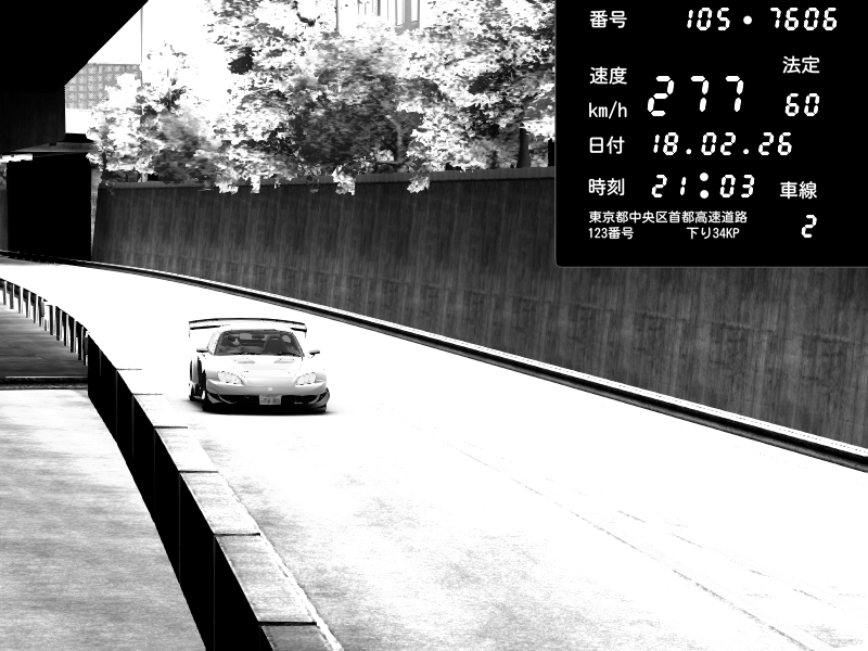 | 2026/02/18 13:52 | C1外回り 京橋 | 207 / 60 km/h | Shinra | Honda S2000 (AP2 - Legendary) | CAPTURE |