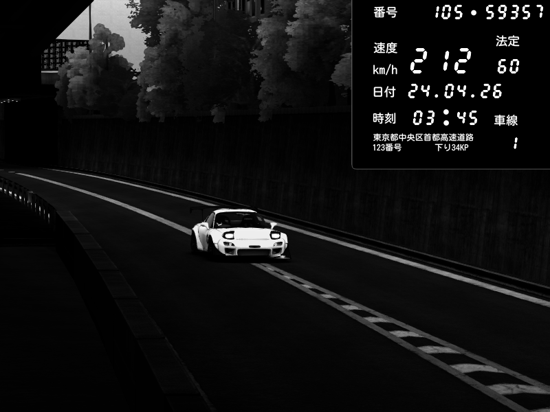 | 2026/04/22 01:03 | C1外回り 京橋 | 284 / 60 km/h | AK_tomono_♠️♣️♥️♦️ | Mazda RX-7 FD3S FEED Afflux GT3 | CAPTURE |