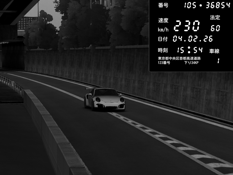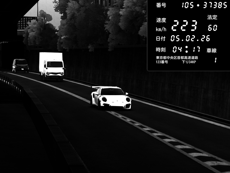 | 2026/02/05 04:17 | C1外回り 京橋 | 223 / 60 km/h | BetonA | Porsche 911 GT3 RS | CAPTURE |