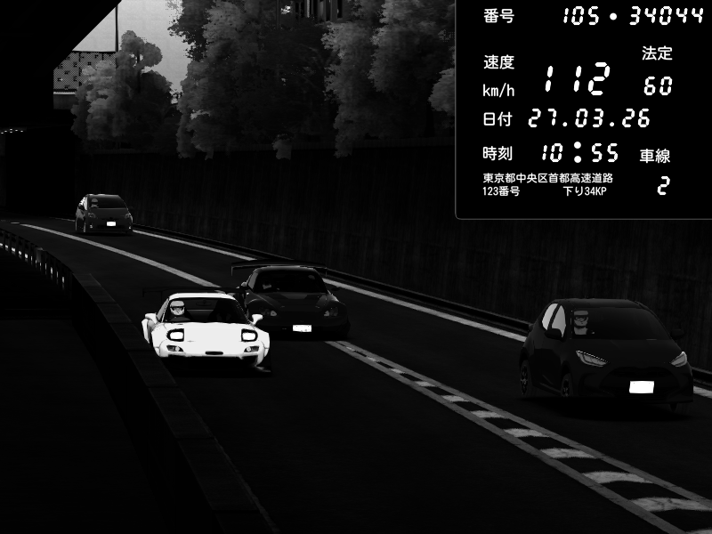 | 2026/03/27 11:29 | C1外回り 京橋 | 109 / 60 km/h | dome | Mazda RX-7 FD3S FEED Afflux GT3 | CAPTURE |