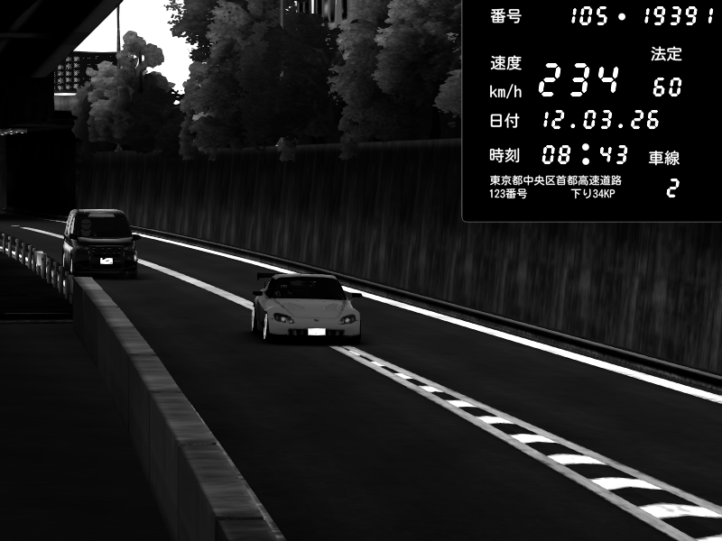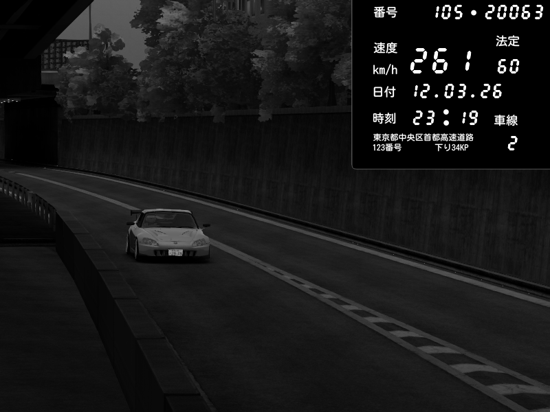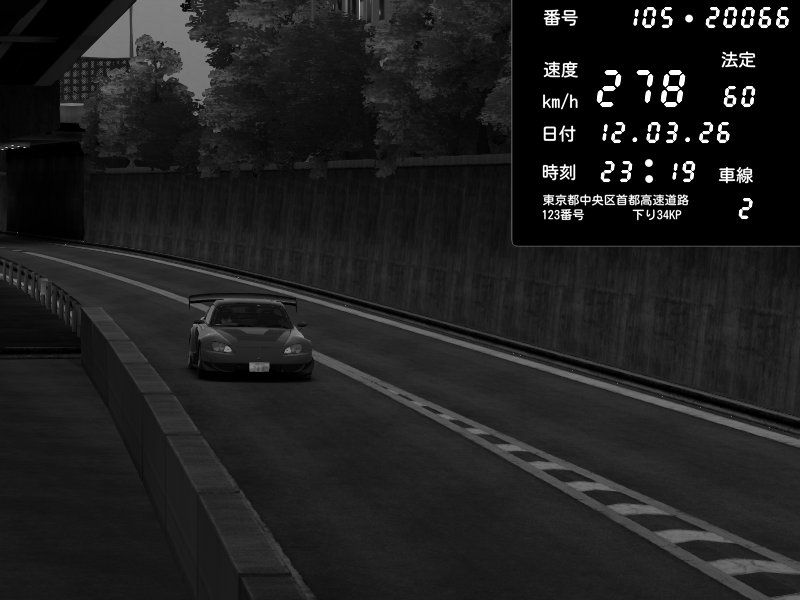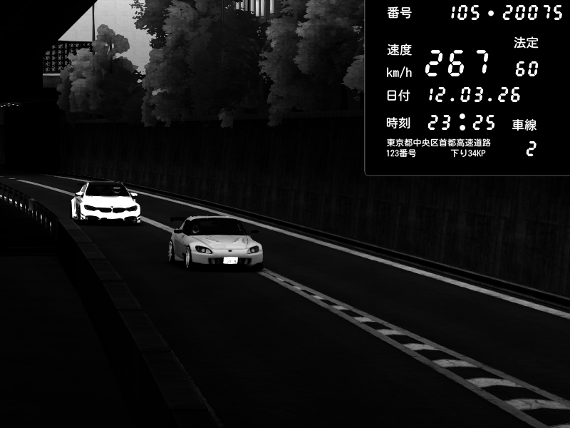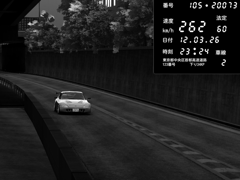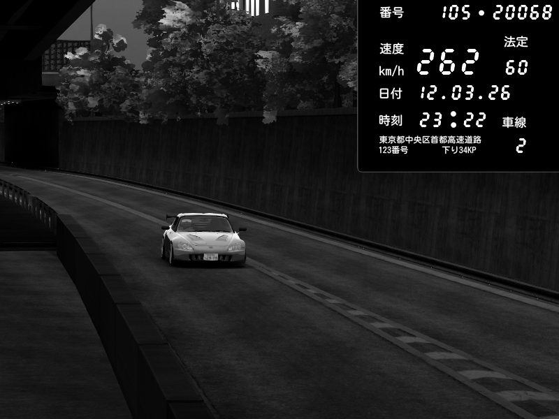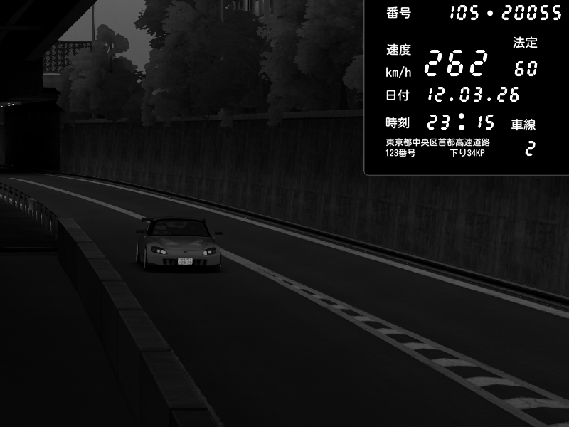 | 2026/03/12 15:03 | C1外回り 京橋 | 262 / 60 km/h | toru-murakami | Honda S2000 (AP2 - Legendary) | CAPTURE |