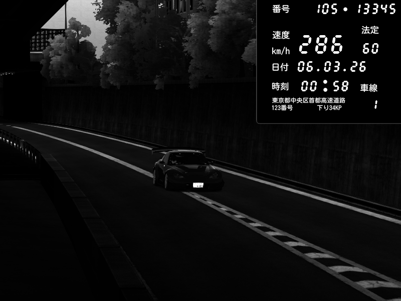 | 2026/03/06 00:58 | C1外回り 京橋 | 286 / 60 km/h | Shinra | Honda S2000 Turbo GT1 Amuse (AP1) | CAPTURE |